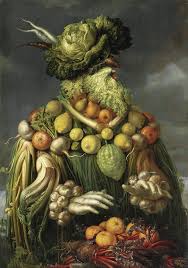 Sus pinturas eran referidas a el retrato, donde los rostros se componían a través de animales, frutas,verduras, flores, y diferentes objetos.